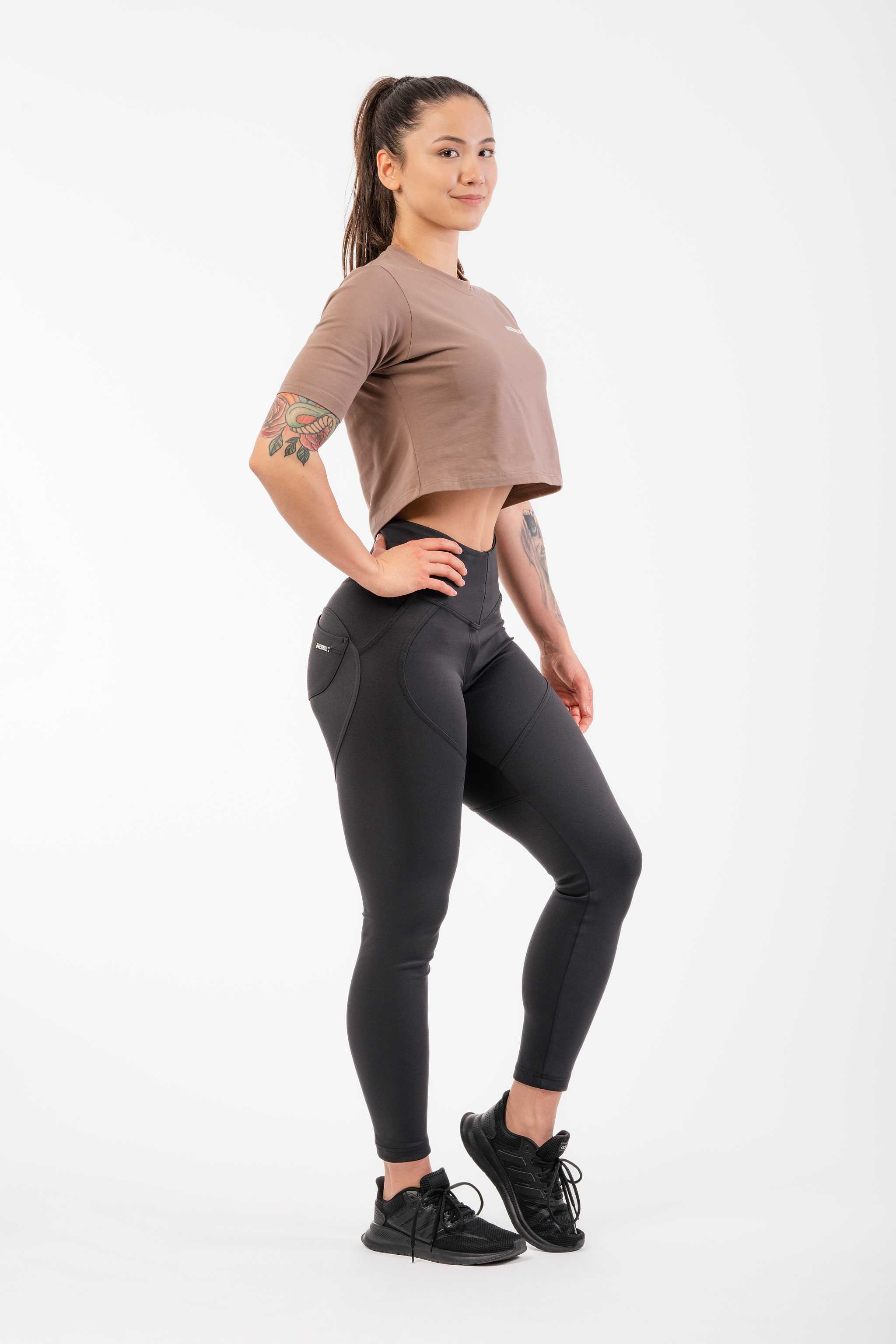 We have taken the classic cotton T-shirt to a whole new level. Thanks to added elastane, you will enjoy more flexibility and efficient sweat-wicking properties. The T-shirt is also resistant to abrasion and wrinkling. Do you prefer black, white, brown or all three? You can easily combine each model with NEBBIA leggings, bubble butt pants or your favorite jeans.