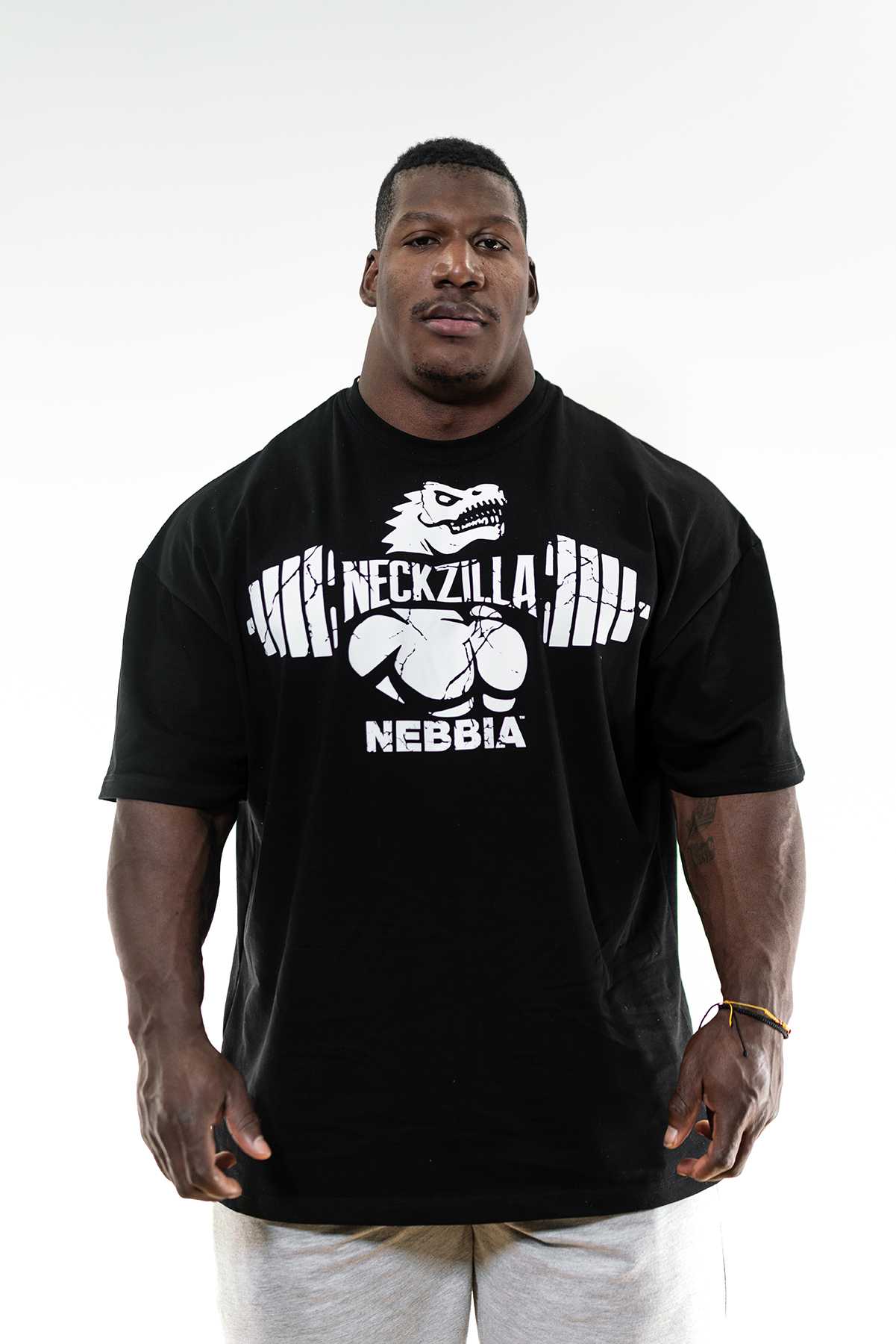 Don't miss the chance to get your NECKZILLA t-shirt! We are thrilled to offer you a limited drop created in collaboration with the phenomenal Rubiel Mosquera. This men's oversized t-shirt with the original NEBBIA x NECKZILLA print will be your favorite choice not only for the gym! With its large old-school cut, extended sleeves, and 100% cotton fabric that is soft, breathable, and pleasant to the touch. Attention! The exclusive print on the front and back clearly places you in your bodybuilding community. Because only a bodybuilder with body and soul knows exactly who was the inspiration behind this t-shirt!