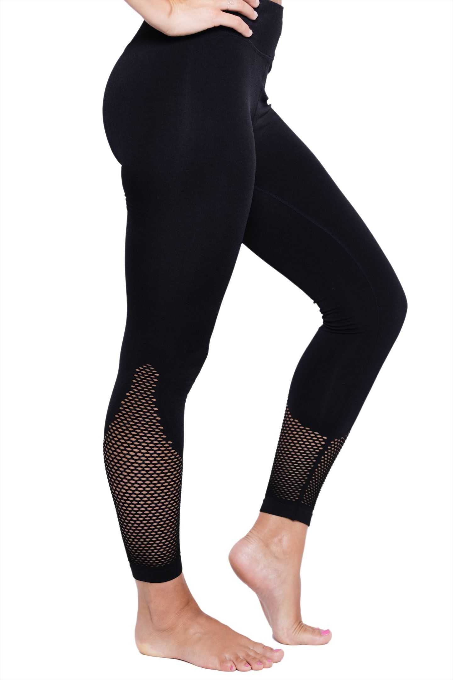 Crop length tight with stay put waistband; Sorbtek moisture wicking fabric; Seamless design with mesh details; machine wash; 92%Polyester/8% Spandex.