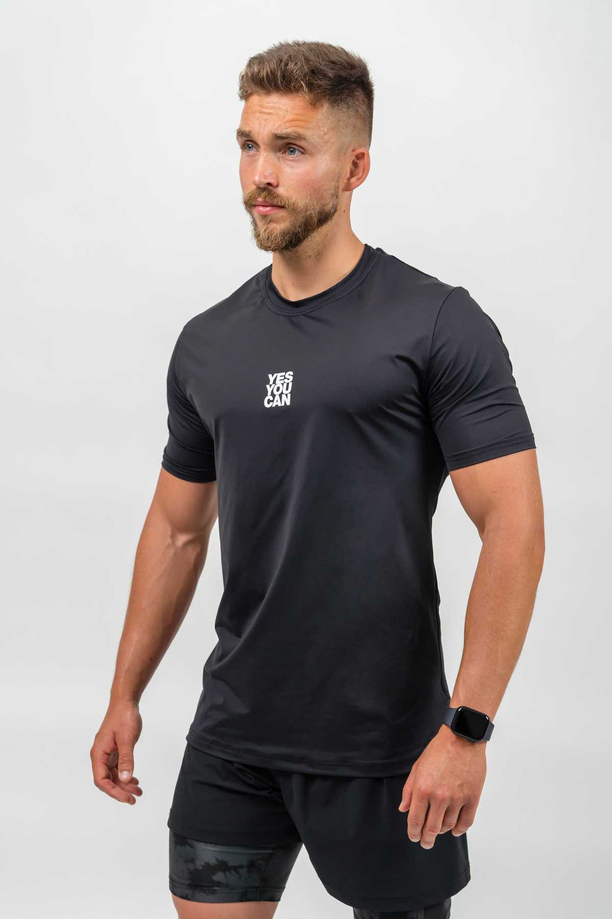 This men's functional T-shirt is designed for your comfortable training in dry conditions. It bears the strong motto "YES YOU CAN," reminding you that you can achieve whatever you set your mind to. No matter what your goal is, this T-shirt will always remind you that you have infinite potential.
