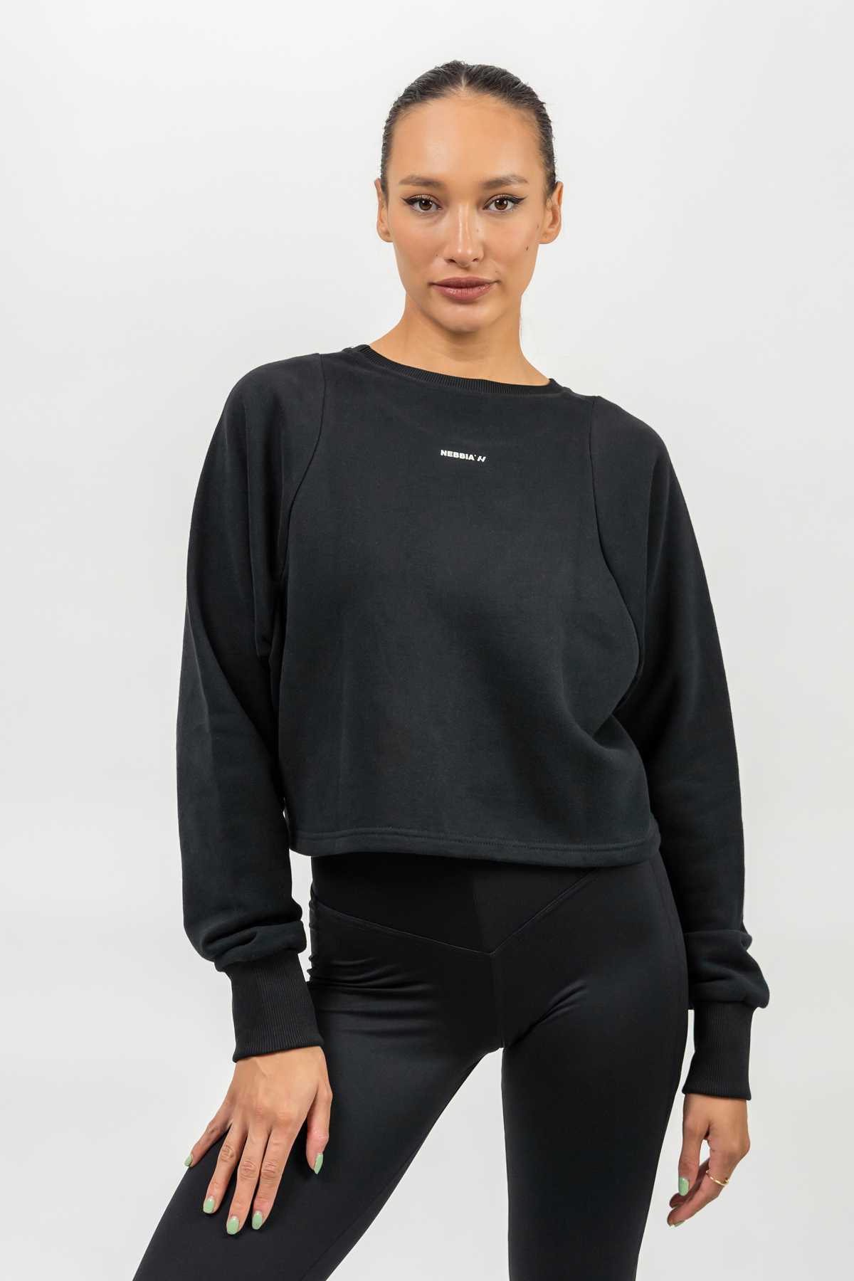 A stylish cropped sweatshirt that will make you feel extremely comfortable. And not only because it is made of a pleasant cotton material. It is breathable and soft and gives you freedom in each motion you make. Thanks to the elasticated ribbings and thumbholes, you can be sure that the sleeves will stay firmly in place without the need for constant adjustments.