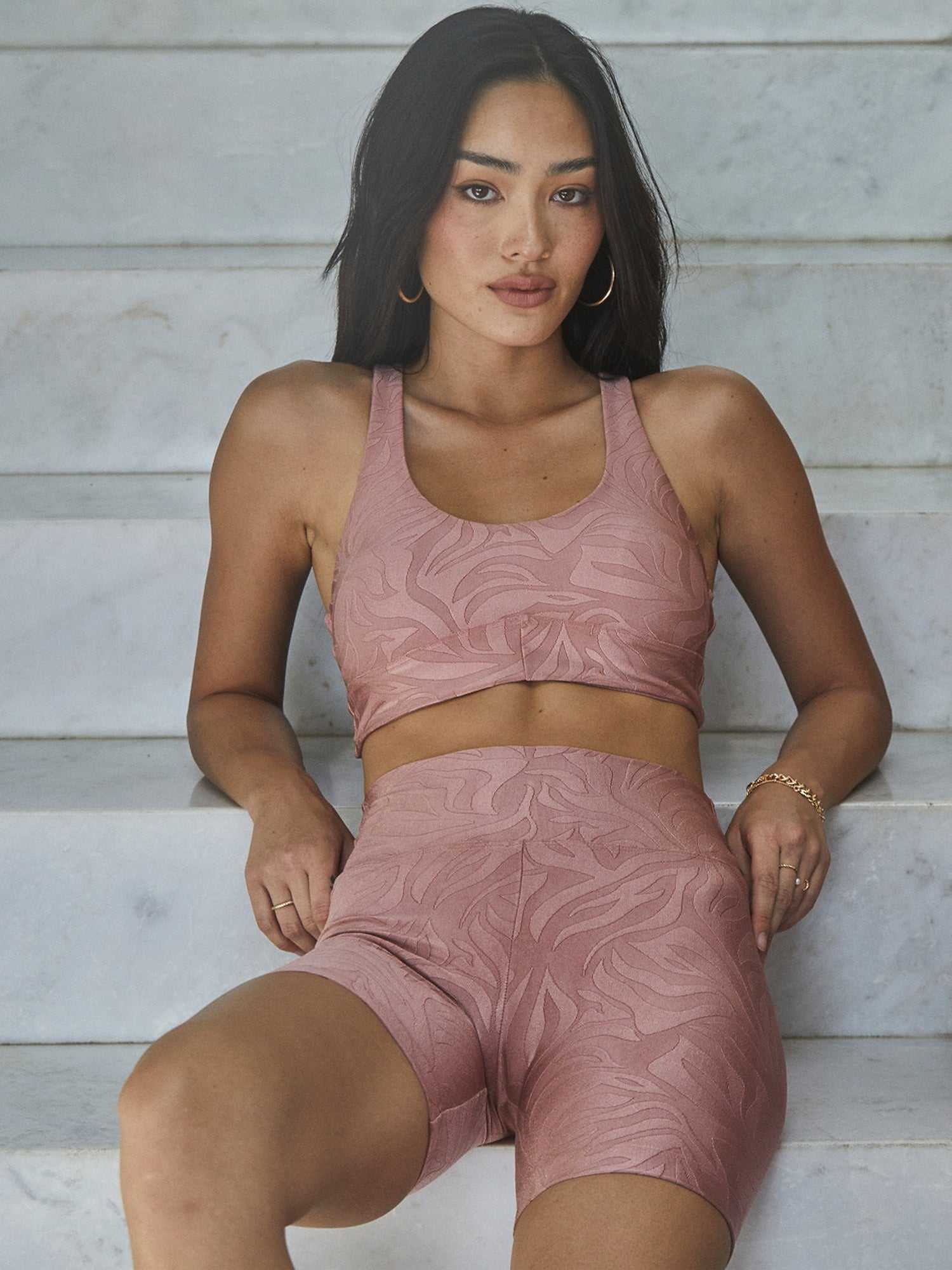 The Ring Foliage Sports Bra effortlessly combines style and support, with a subtle print and a fitted, racerback silhouette. The exclusive Koral Foliage™ Fabric is our new soft touch performance fabric that’s made with ketten technology, providing muscle compression and decreasing muscle tension, and has firm elasticity and UV protection. Fits true to size, take your usual Koral sizing. Recommended for High Performance